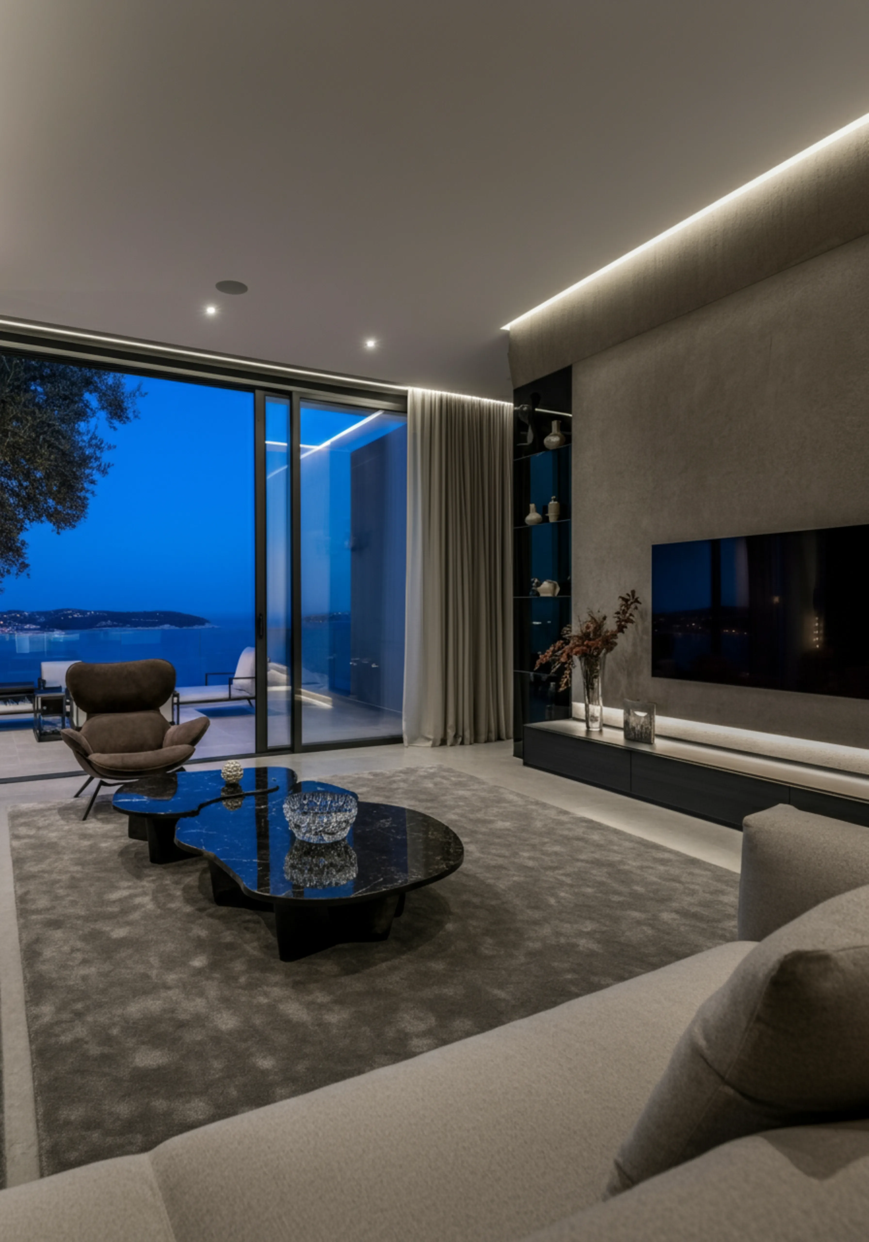 Elegancia costera entre luz y materialidad.